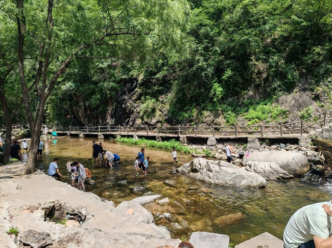 從王府竹海的售票處步行約20分鐘,我們抵達(dá)了檢票口。一進(jìn)入景區(qū),一股沁人心脾的涼意便撲面而來,仿佛瞬間進(jìn)入了一個天然的大空調(diào)。正如期待中的那樣,王府竹海果然名不虛傳!它被譽(yù)為“欒川的小重渡溝”,進(jìn)山后沿水系棧道前行,清泉飛瀑隨處可見,原始自然的生態(tài)環(huán)境讓人沉醉。我們沿著蜿蜒的棧道,溯流而上,或駐足觀賞那從崖壁間奔涌而下的飛瀑,感受其磅礴氣勢;或俯身嬉戲于清澈見底的山泉,享受那份難得的清涼與童趣。由于景區(qū)基本是原路去原路回的設(shè)計,所有的山泉飛瀑均能盡收眼底,讓我們大飽眼福。近3—4小時的游覽,大家雖略感疲憊,但身心卻得到了極大的放松與愉悅。