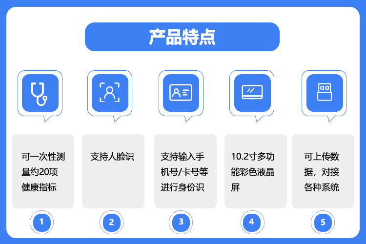 體溫、血氧、血糖、投幣、支付、IC卡/身份證、手機(jī)號等身份識別 |
